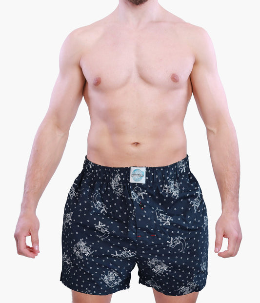 Into the night Men's Woven Cotton Boxers -With Button Fly and Pockets